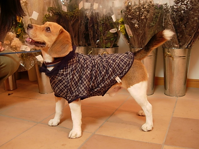 偶然お店に訪れたビーグル犬プッチ君が着てくれました♪